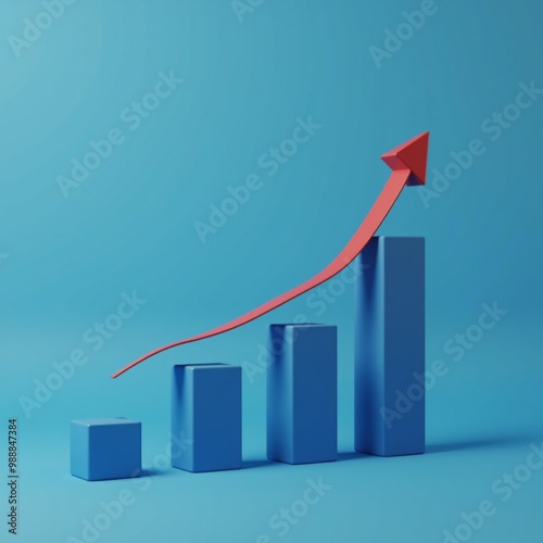A red arrow going up over a blue bar chart.