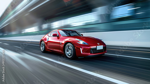 A red car sports car driving on the highway