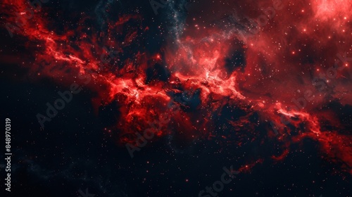 A red galaxy with stars and a black background. The galaxy is full of red and blue colors