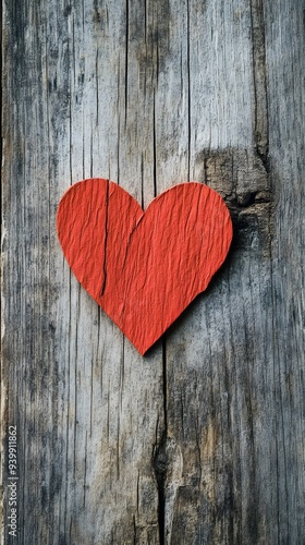 A red heart on an old wooden background symbolizes love and affection for a Valentine's Day celebration