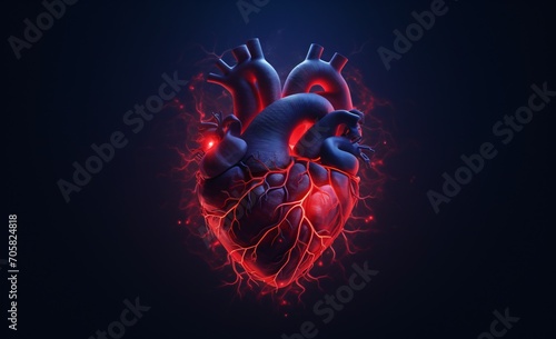 A red heart with a blue background Generative AI