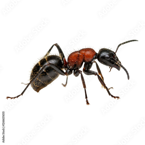 ant, insect, arthropod, invertebrate, wildlife, nature, closeup, macro, photo, animal, fauna, bug, creature, antennae, leg, body, head, chested, abdomen, black, red, hairy, fuzzy, detailed, sharp, sharpened, isolated, background, dark, contrast, detail, segmented, exoskeleton, formicidae, hymenoptera, small animal, pest, predator