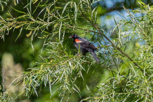 nature, bird, blackbird, animal, wild, wildlife, perched, tree, green, beauty, summer, outdoors, environment, wisconsin