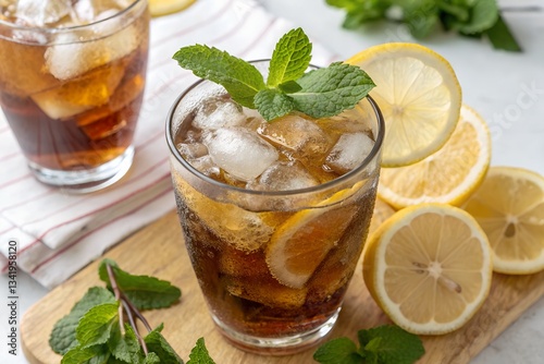 iced tea, glasses, mint, lemon, refreshing, drink, beverage, ice, slice, green, cold, summer, hydratation, tea, herbal, cool, citrous, iced, minty, cold drink, lemony, sweet, clear, thirst quenching, chill, liquid, condensation, fresh, healthy, nature, organic, relaxation