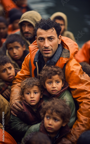 refugee, father, protect, son, mediterranean sea, family, children, children, children, together, group, love