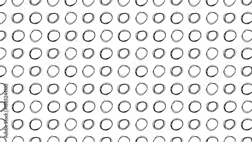 A repetitive pattern of hand drawn circles on a white background creating a seamless design