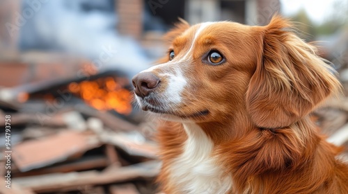 rescue, dog, rescuer, debris, environment, smoke, billowing, teamwork, collaboration, search, debris, disaster, emergency, help, aid, save, survival, chaos, dust, crisis, effort, danger, partnership, mission, recovery, bravery, determination, persistence, courage, hope, coordination, support, heroism, perseverance, hazard, lifesaving, challenge, protection, safety, oneness
