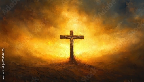 A reverent painting of the Cross of Jesus, emphasizing the importance of faith, redemption, and eternal life