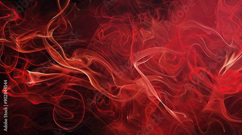 A rich red background with swirling, smoke-like patterns in black, adding a mysterious and enchanting touch.