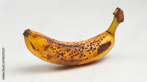 A ripe banana with brown spots on its peel, highlighting natural ripening stages and the beauty of everyday food simplicity.