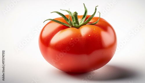 A ripte shiny tomato pictured on a white backgroud