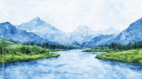 serene, profile, resolution, picture, painting, flowing, vale, watercolor, job, colours, scenery, drawing, tree, mountain, high, hill, scenic, rock, illustration, morning, cloud, art, blue, sky, style, snow, beauty, grass, green, lake, water, nature, distance, foreground, fall, fog, image, duck pond, photo, wilderness, island, river bank, range, hiking, haze, mist, canada