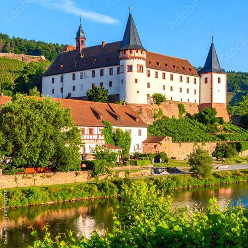 castle, town, river, hill, greenery, building, mediaeval, architecture, vinery, landscape, scenic, summer, sun, water, europa, german, history, tour tourism, travel