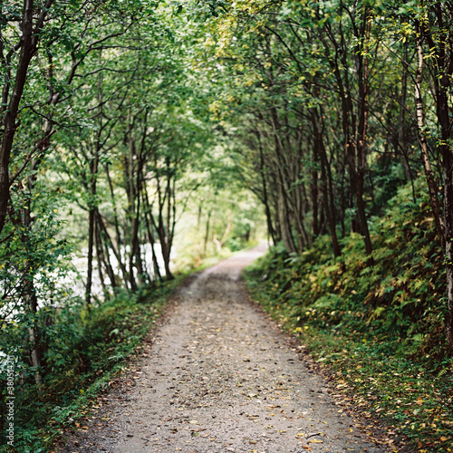 kodak, road, perspective, norge, nature, lush, leaf, landscape, green, forest, film, fall, colours, cloud, autumn, atmospheric