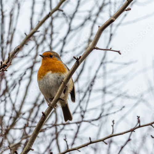 A Robin Redbreast on a tree in winter. Shot at London Wetland in Barnes