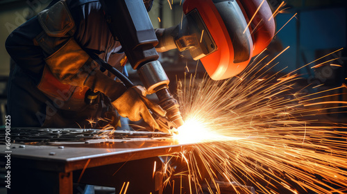 A robotic arm in a factory is performing welding operations