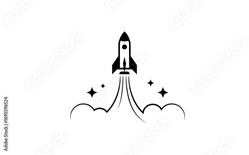 rocket, launch, space, star, innovation, technology, graphic, illustration, line art, minimalist, progress, achievement, vector, simple, black-and-white, monochrome, startup, future, inspiration, motivation, business, design element, digital artwork, graphic design, clean, modern, abstract, success, upward, flight, space-travel, cosmic, futuristic, icon, logotype, template, silhouette, outline, symbol