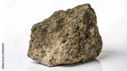 rock, stone, grey, brown, beige, rough, textured, surface, natural, formation, geology, mineral, earth, solid, hard, boulder, fragment, material, isolated, white, background, studio, light, shadow, closeup, macro, detail, simple, minimalist