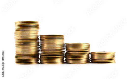 money, coin, numismatic, row, decrease, decreasing, still life, object, white background, investment, economy, finance, business, brass, copper