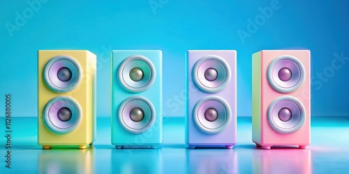 speaker, sound, audio, music, vibrant, colourful, pastel, yellow, blue, purple, pink, modern, technology, entertainment, design, audiophile, audio system, high-quality, listening, amplifier, bass, treble, stereo, audio equipment