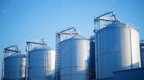 industrial, silos, tank, storage, grain, agriculture, farming, metal, steel, blue, sky, sunlight, factory, building, production, construction, processing, machinery, equipment, modern, technology, infrastructure, industry, industrial complex, commercial, business, architecture, design, structure