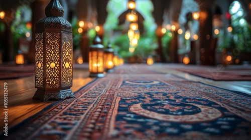 candle, light, lantern, lamp, glow, illumination, pattern, carpet, rug, floor, wood, room, space, interior, design, decor, decoration, style, oriental, arabic, muslim, religion, culture, tradition, ambience, romantic, cosy, warm, mystical, magic, shadow, blur, bokeh, soft, sharpened, closeup, detail, abstract, texture, vintage, antique, gold, brown, red, blue
