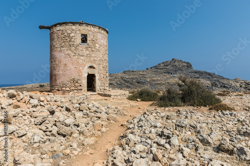 A ruined mill on the way to the Kleoboulous's tomb in Lindos on the Rhodes Island, Greece.