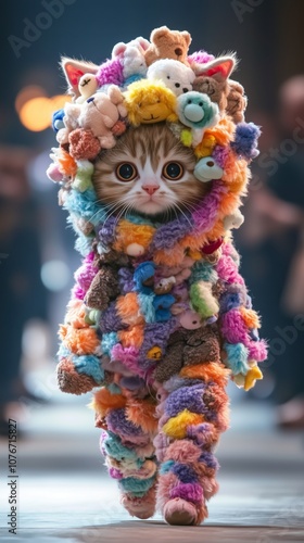 A runway scene featuring a fully anthropomorphized baby cat