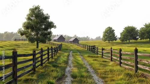 farm, fence, grass, green, nature, country, summer, field, sky, rural, countryside, landscape, meadow, pasture, beautiful, tree, house, agriculture, outdoors, road, sunny, scenic, ranch, wooden, blue, cloud, wood, farmland, village, barn