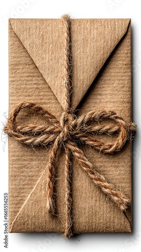 envelope, paper, twine, tied, bow, rustic, gift, package, mail, letter, message, brown, texture, vintage, simple, elegant, hand-made, craft, natural, organic, recyclable, environmentally friendly, sustainable, minimal, stylish, decor, detail, closeup, photo, background, isolated, white, object, stationery, correspondence, communication, delivery, postal, shipping, tied-up, sealed, secure, presentation, wrapped