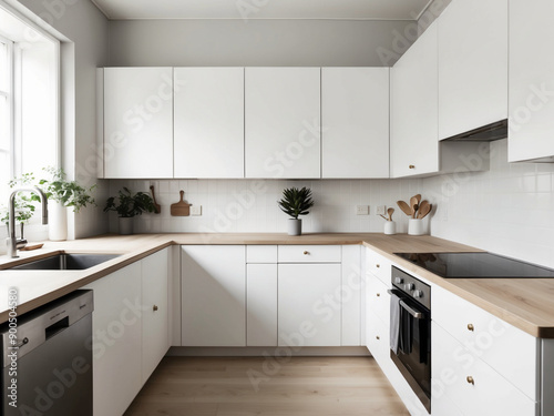 scandinavian, kitchen, potted plants, greenery, simplicity, natural light, uncluttered, inviting, comfortable, fresh, stylish, organised, efficient, cosy, serene