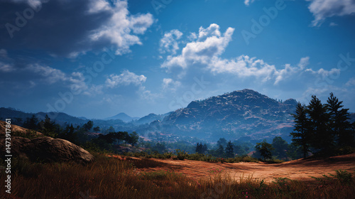landscape, sky, nature, mountain, cloud, cloud, grass, summer, hill, mountain, field, tree, meadow, green, forest, travel, rural, blue, vale, outdoors, lake, desert, countryside, view, panorama