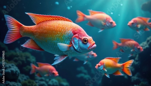 A school of rainbow-colored fish swimming together , vibrant, colorful, underwater