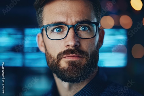 man, portrait, intellect, sharpened, wear, glasses, determination, captivate, set, adult, device, scientist, alien, hologram, work, design, energy, young, business, cognition, galaxy, career, look, advance, mystery, success, human, projection, modern, person, study, cosmo, orbit, universe, object, insight, urban, canvasses