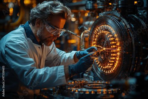 A scientist manipulating magnetic fields to solve a physics problem, illustrating unconventional scientific solutions. Concept of experimental problem-solving and physics.
