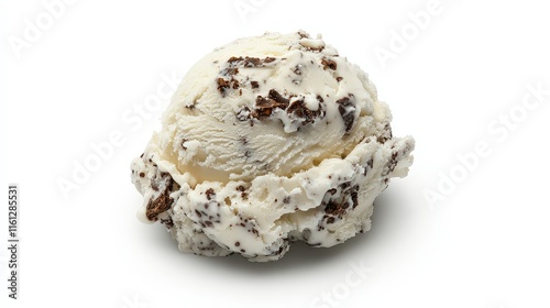 A scoop of creamy vanilla ice cream with a smooth texture and slight ridges, showcasing its rich and inviting appearance, perfect for a hot day or as a dessert topping.