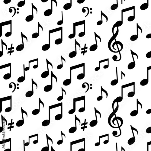 A seamless black‑and‑white music note pattern serves as a backdrop and texture design