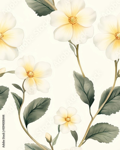 A Seamless Pattern A delicate pattern of blooming flowers showcasing soft petals and vibrant green leaves.