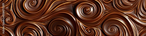 A seamless pattern of chocolate liquid texture, showcasing the intricate swirls and textures characteristic of reallife melted chocolate. The background is a rich brown color with detailed lines