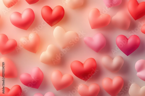 A seamless pattern of soft, glowing red and pink hearts floating on a pastel gradient background.