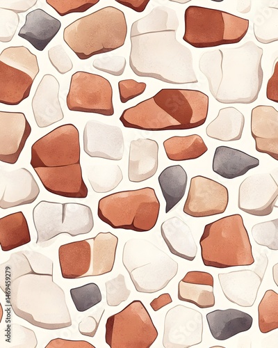 A seamless pattern of various colored stones, including red, white, and grey, arranged in a random pattern