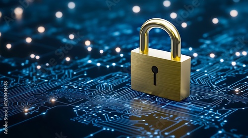 A Secure Digital Environment Represented by a Golden Lock on a Circuit Board