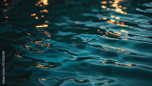 A Serene and Calm Blue-Green Water Surface Reflecting Soft Light, Creating a Peaceful and Tranquil Atmosphere with Gentle Ripples and Natural Beauty