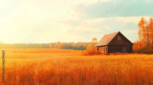 autumn, harvest, landscape, ripe, field, sunlit, cabin, gold, rural, serene, nature, countryside, farm, agriculture, crop, peaceful, rustic, natural, season, warm, outdoors, sunlight, tranquil, seasonal, scenic, idylli, farming, pastoral, scenery, environment, wheat, meadow, field, calm, sky, traditional, plant, eco, growth, lifestyle