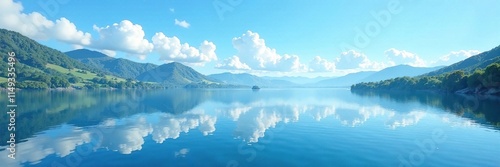 A serene blue sky reflected in a calm body of water, serene atmosphere, outdoor photography, tranquil surroundings