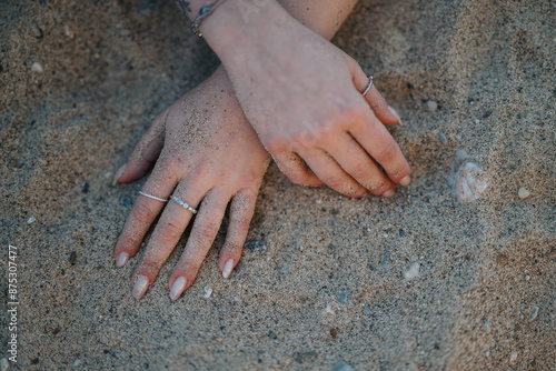 closeup, vacation, macro, beach, happiness, serenity, sandy, rest, relaxation, natural, travel, detail, leisure, seacoast, outdoors, enjoying, enjoyment, accessory, touch, idylli, intimate, relaxing, scenic, jewellery, journey, together, finger, joy, trip, peace, holiday, coastal, coast, shore, hand, happy, summer, ring, calm, sand, nature, get-away, calmness, texture, romantic, love