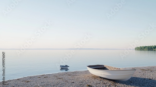 boat, water, lake, shore, calm, nature, landscape, calmness, sky, peaceful, summer, travel, scenery, relaxation, horizon, stone, sunlight, leisure, fishing, adventure, scenic, environment, beauty, ripple, stillness, wood, gentle, wave, blue, greenery, dock, journey, escape, exploration, coast, solitude, morning, dusk, serenity, vacation, retreat, silence, view