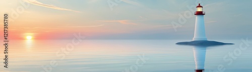 A serene lighthouse stands tall against a tranquil sunset, casting its reflection on calm waters, evoking peace and guidance, Maryland Day