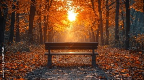 bench, autumn, tree, sunlight, leaf, path, nature, calmness, season, landscape, peaceful, scenery, foliage, environment, park, relaxation, warmth, beauty, horizon, orange, yellow, rustic, wood, shadow, calm, solitude, inviting, vibrant, scenic, morning, afternoon, harmony, escape, wilderness, stroll, serene, picturesque, view, leisure, exploration, ambience, quiet, refuge, glow, dusk, evening