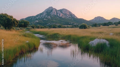 nature, mountain, river, meadow, grass, water, sky, sunset, landscape, field, horizon, hill, scenic, view, tree, calm, peaceful, serene, tranquil, beautiful, wilderness, environment, greenery, green, gold, summer, dusk, morning, light, cloud, rural, wild, countryside, park, national, travel, tour tourism, adventure, explore, discovery, photo, image, photo, digital, art, design, background